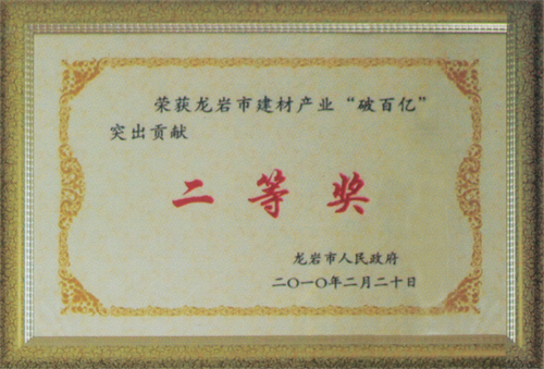 龍巖市建材產(chǎn)業(yè)突出貢獻(xiàn)二等獎
